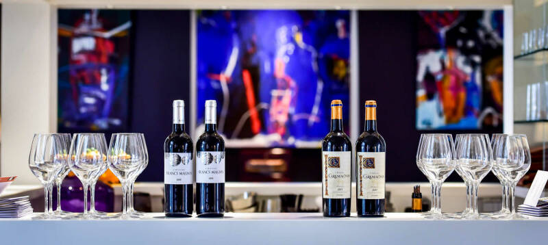 Onderaan bovenaanzicht van de nieuwe wijnkelder van Château Dalem.